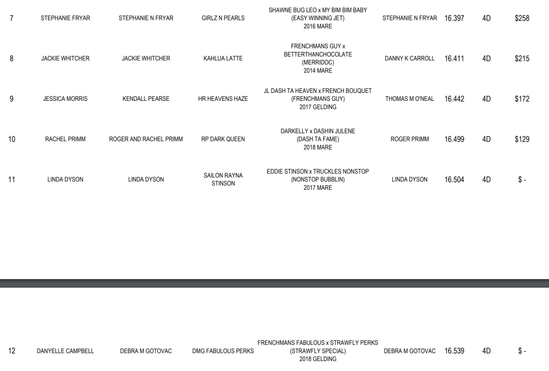 Royal Crown Waco, Open RC Sidepot Round 1 Results 4D